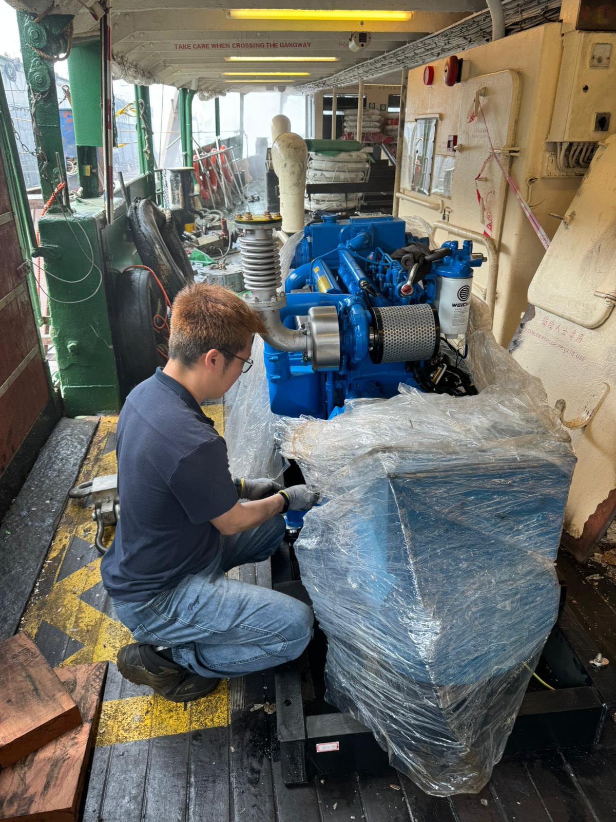 ——发电机的维修与保养服务,以确保发电设备长期稳定运行。主要维修服务范围涵盖船上和陆地。现主要工作是为船上发电机换新机。