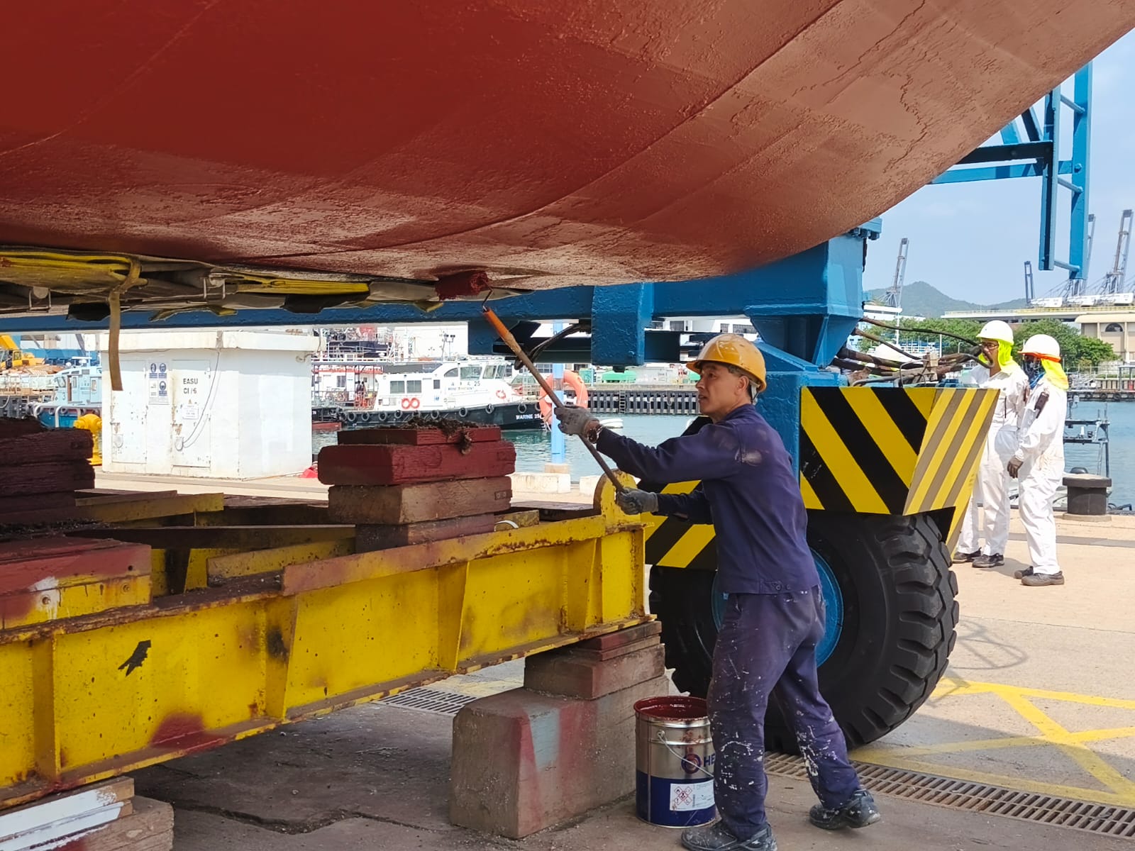 • 工人在检修船体(图示)