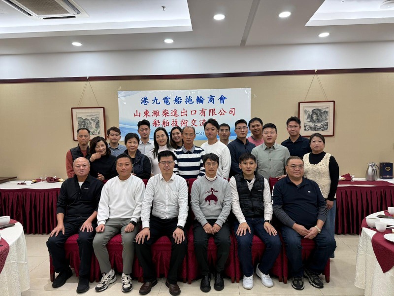 在廣生機器廠有限公司的協助下,港九電船拖輪商會代表團于2025年11月24日至27日北上參訪潍柴總部。訪談期間,潍柴的團隊安排了技術交流會與廠房實地參觀,向商會會員詳細地介紹了最新的船舶發動機技術、研究成果及應用案例。
